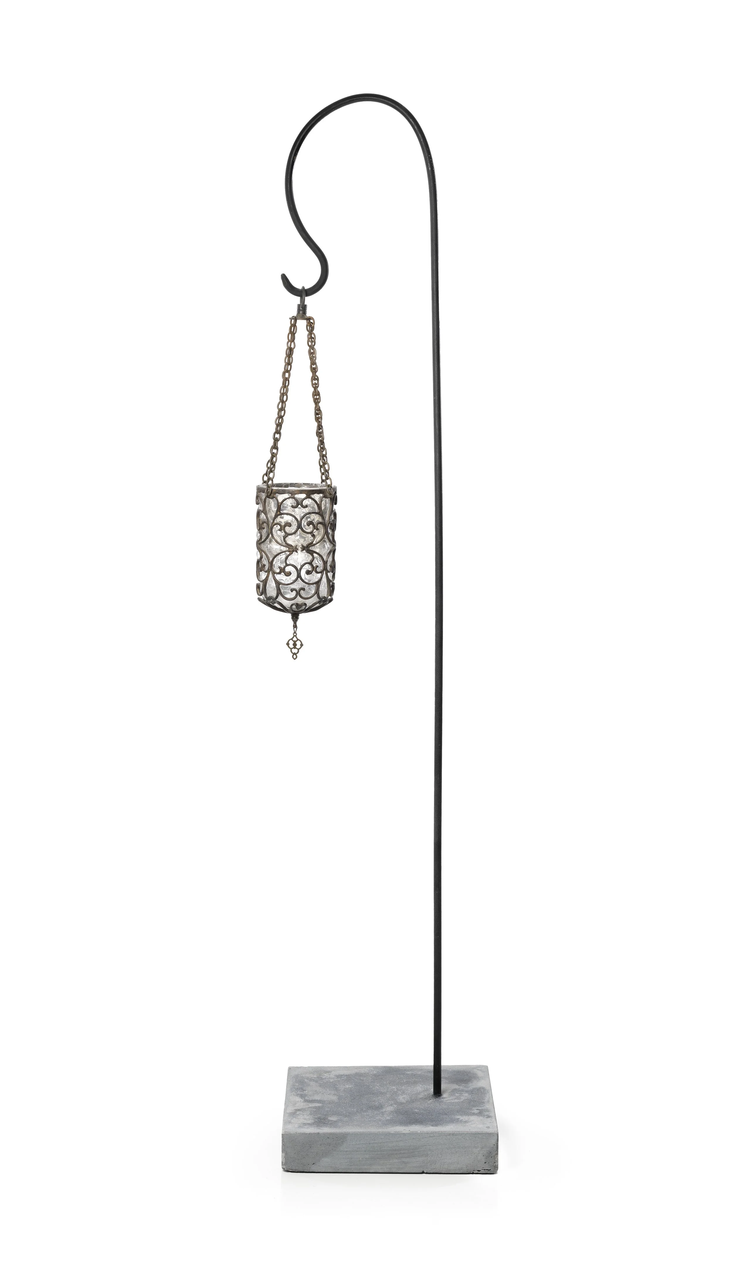 Die am Bazar in Istanbul ergatterte Laterne brauchte dringend eine ebenbürtige Halterung, die beliebig im Raum verstellt werden kann. So entstand die Kombination aus Metall und Beton.